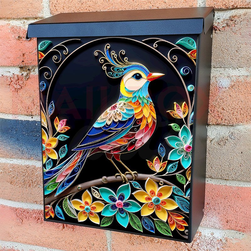 With this Ornate Folklore Bird colonial mailbox cover it’s pretty easy to convert your mailbox to a special and unique item. These covers require a flat surface, so they work with colonial mailboxes that do not have any embossed decoration or signs. Magnetic mailbox covers work with steel colonial boxes only, while self-adhesive vinyl covers are available for aluminum, plastic and steel boxes. We also offer both self-adhesive and magnetic covers with regular opaque white vinyl or reflective vinyl, which works similarly to license plates or road signs. The reflective option makes the entire cover’s surface reflective, ensuring visibility at night. In case your mailbox doesn’t work with these covers, you can purchase the preinstalled cover on a brand new mailbox as well. Also, you can create your custom colonial mailbox cover using you own pictures, adding your name, street number, etc.