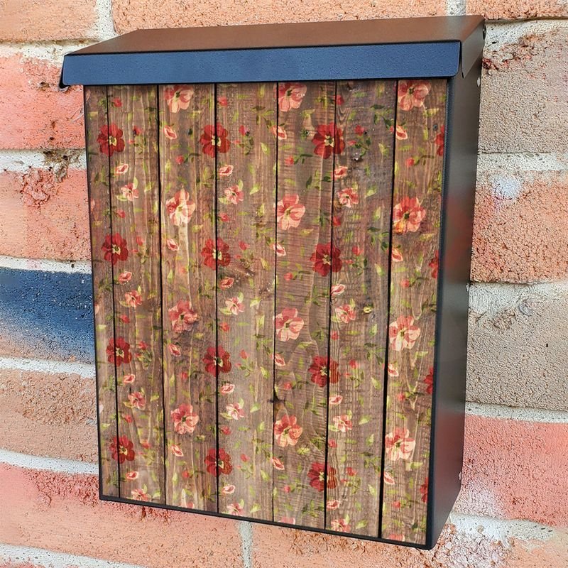 With this Painted Flowers on Wood #5 colonial mailbox cover it’s pretty easy to convert your mailbox to a special and unique item. These covers require a flat surface, so they work with colonial mailboxes that do not have any embossed decoration or signs. In case your mailbox doesn’t work with these covers, you can purchase the preinstalled cover on a brand new mailbox as well. Also, you can create your custom colonial mailbox cover using you own pictures, adding your name, street number, etc.