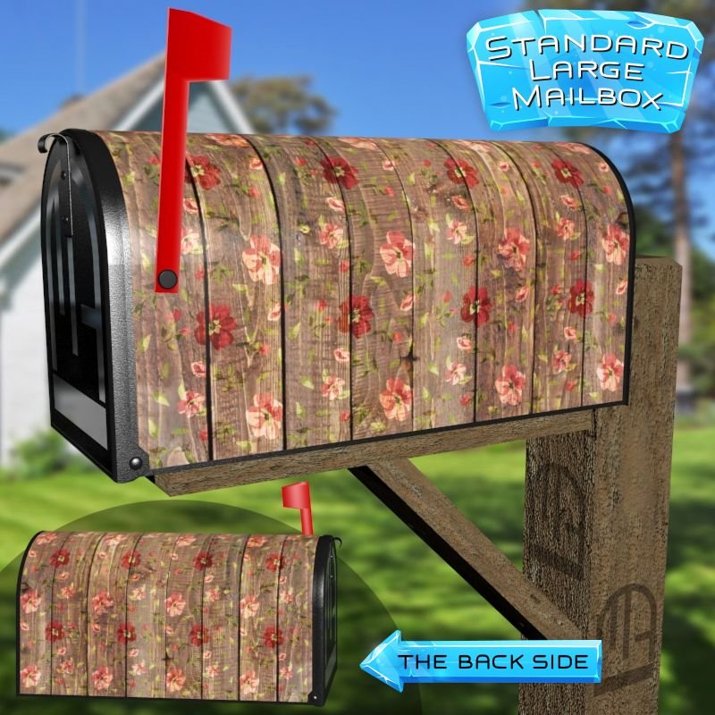 Dressing up your rural farm mailbox with the Painted Flowers on Wood #5 mailbox cover is an easy way to convert it into a unique and special item. These covers require a smooth surface, so they are compatible with rural farm mailboxes that do not have any embossed decorations or signs. Magnetic mailbox covers work with steel boxes only, while self-adhesive vinyl covers are available for aluminum, plastic and steel boxes. If your mailbox is not compatible with these covers, you can purchase a brand new mailbox with a preinstalled cover. Additionally, you have the option to create a custom rural farm mailbox cover with your own pictures, name, street number, etc.