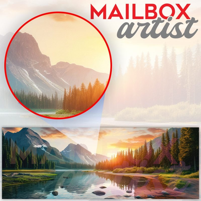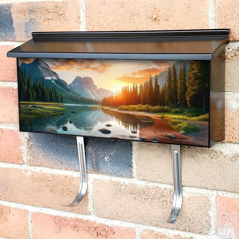 Applying your Panoramic Mountain Lake At Sunset townhouse / ranch mailbox cover it’s pretty easy to convert your mailbox to a special and unique item. These covers require a flat surface, so they work with townhouse / ranch mailboxes that do not have any embossed decoration or signs. Magnetic mailbox covers work with steel boxes, for aluminum and plastic boxes we offer the self-adhesive vinyl covers. In case your mailbox doesn’t work with these covers, you can purchase the preinstalled cover on a brand new mailbox as well. Also, you can create your custom townhouse / ranch mailbox cover using you own pictures, adding your name, street number, etc.