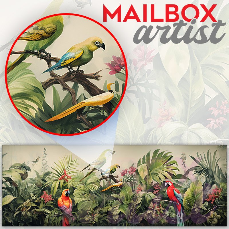 This Parrots And Tropical Plants mailbox design was created by Krisztina Soos
