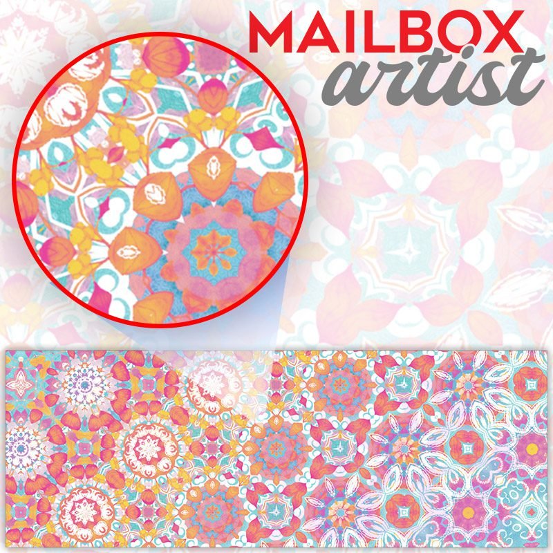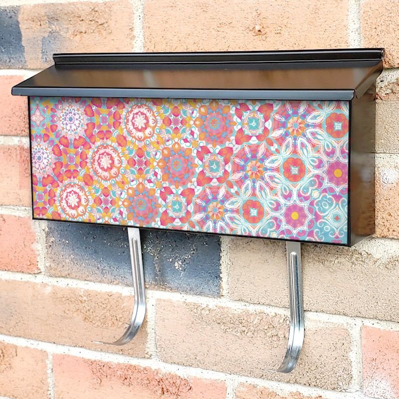 Applying your Pastel Folklore Pattern townhouse / ranch mailbox cover it’s pretty easy to convert your mailbox to a special and unique item. These covers require a flat surface, so they work with townhouse / ranch mailboxes that do not have any embossed decoration or signs. Magnetic mailbox covers work with steel boxes, for aluminum and plastic boxes we offer the self-adhesive vinyl covers. In case your mailbox doesn’t work with these covers, you can purchase the preinstalled cover on a brand new mailbox as well. Also, you can create your custom townhouse / ranch mailbox cover using you own pictures, adding your name, street number, etc.