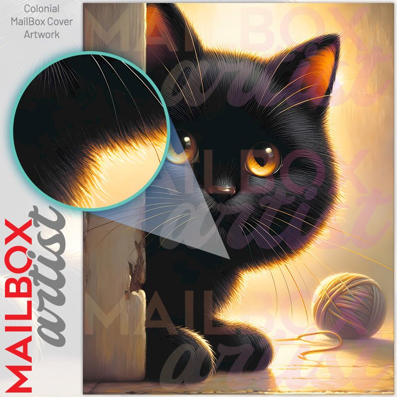 With this Peeking Black Cat colonial mailbox cover it’s pretty easy to convert your mailbox to a special and unique item. These covers require a flat surface, so they work with colonial mailboxes that do not have any embossed decoration or signs. Magnetic mailbox covers work with steel colonial boxes only, while self-adhesive vinyl covers are available for aluminum, plastic and steel boxes. We also offer both self-adhesive and magnetic covers with regular opaque white vinyl or reflective vinyl, which works similarly to license plates or road signs. The reflective option makes the entire cover’s surface reflective, ensuring visibility at night. In case your mailbox doesn’t work with these covers, you can purchase the preinstalled cover on a brand new mailbox as well. Also, you can create your custom colonial mailbox cover using you own pictures, adding your name, street number, etc.