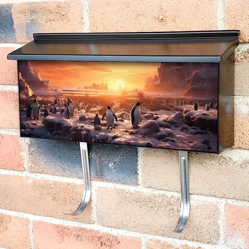 Applying your Penguin Colony On An Icy Beach townhouse / ranch mailbox cover it’s pretty easy to convert your mailbox to a special and unique item. These covers require a flat surface, so they work with townhouse / ranch mailboxes that do not have any embossed decoration or signs. Magnetic mailbox covers work with steel boxes, for aluminum and plastic boxes we offer the self-adhesive vinyl covers. In case your mailbox doesn’t work with these covers, you can purchase the preinstalled cover on a brand new mailbox as well. Also, you can create your custom townhouse / ranch mailbox cover using you own pictures, adding your name, street number, etc.