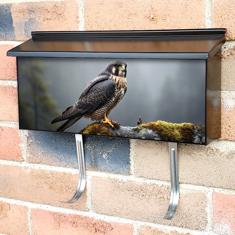 Applying your Peregrine Falcon Standing On A Fallen Tree Branch townhouse / ranch mailbox cover it’s pretty easy to convert your mailbox to a special and unique item. These covers require a flat surface, so they work with townhouse / ranch mailboxes that do not have any embossed decoration or signs. Magnetic mailbox covers work with steel boxes, for aluminum and plastic boxes we offer the self-adhesive vinyl covers. In case your mailbox doesn’t work with these covers, you can purchase the preinstalled cover on a brand new mailbox as well. Also, you can create your custom townhouse / ranch mailbox cover using you own pictures, adding your name, street number, etc.