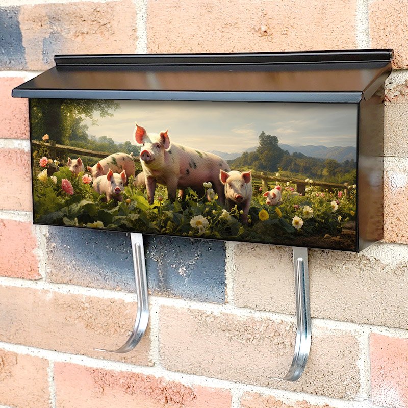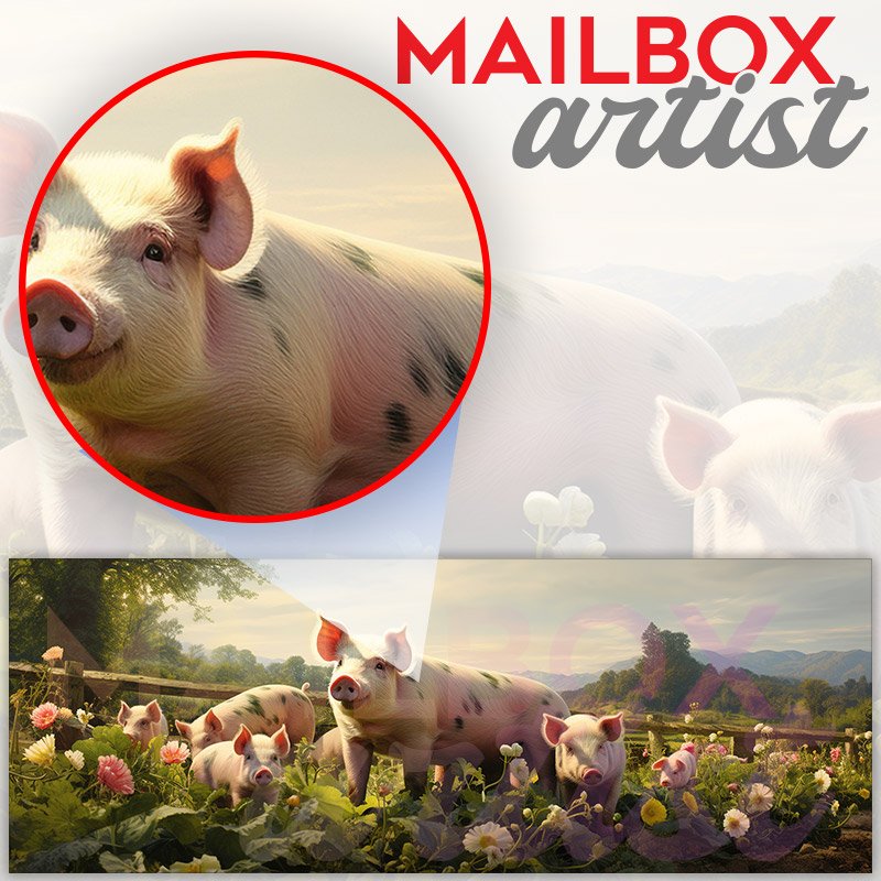 Applying your Piglets In The Valley townhouse / ranch mailbox cover it’s pretty easy to convert your mailbox to a special and unique item. These covers require a flat surface, so they work with townhouse / ranch mailboxes that do not have any embossed decoration or signs. Magnetic mailbox covers work with steel boxes, for aluminum and plastic boxes we offer the self-adhesive vinyl covers. In case your mailbox doesn’t work with these covers, you can purchase the preinstalled cover on a brand new mailbox as well. Also, you can create your custom townhouse / ranch mailbox cover using you own pictures, adding your name, street number, etc.