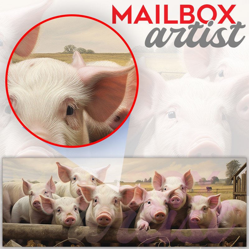 Applying your Piglets On The Farm townhouse / ranch mailbox cover it’s pretty easy to convert your mailbox to a special and unique item. These covers require a flat surface, so they work with townhouse / ranch mailboxes that do not have any embossed decoration or signs. Magnetic mailbox covers work with steel boxes, for aluminum and plastic boxes we offer the self-adhesive vinyl covers. In case your mailbox doesn’t work with these covers, you can purchase the preinstalled cover on a brand new mailbox as well. Also, you can create your custom townhouse / ranch mailbox cover using you own pictures, adding your name, street number, etc.
