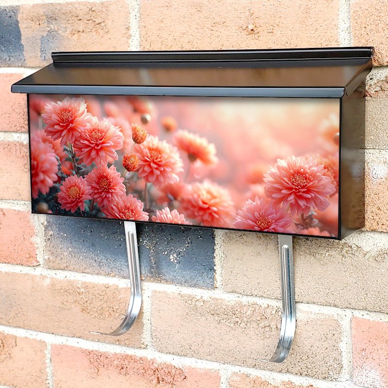 Applying your Pink Chrysanthemum Flowers On Sunny Scene townhouse / ranch mailbox cover it’s pretty easy to convert your mailbox to a special and unique item. These covers require a flat surface, so they work with townhouse / ranch mailboxes that do not have any embossed decoration or signs. Magnetic mailbox covers work with steel boxes, for aluminum and plastic boxes we offer the self-adhesive vinyl covers. In case your mailbox doesn’t work with these covers, you can purchase the preinstalled cover on a brand new mailbox as well. Also, you can create your custom townhouse / ranch mailbox cover using you own pictures, adding your name, street number, etc.