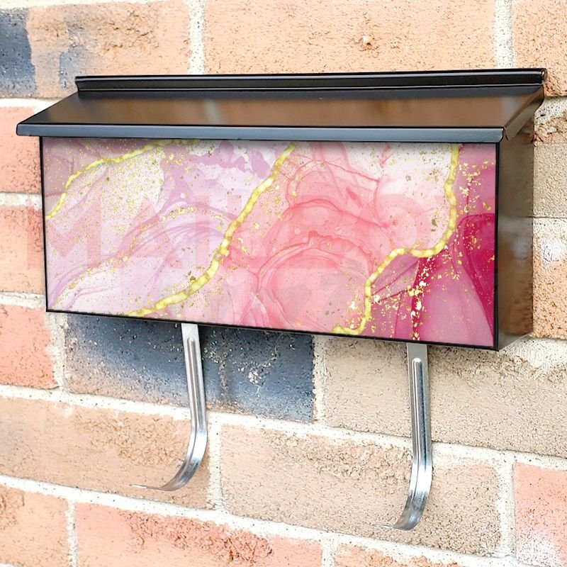 Applying your Pink Marble Design townhouse / ranch mailbox cover it’s pretty easy to convert your mailbox to a special and unique item. These covers require a flat surface, so they work with townhouse / ranch mailboxes that do not have any embossed decoration or signs. Magnetic mailbox covers work with steel boxes, for aluminum and plastic boxes we offer the self-adhesive vinyl covers. In case your mailbox doesn’t work with these covers, you can purchase the preinstalled cover on a brand new mailbox as well. Also, you can create your custom townhouse / ranch mailbox cover using you own pictures, adding your name, street number, etc.