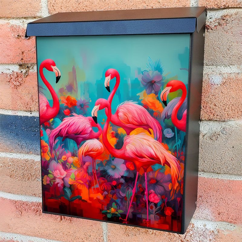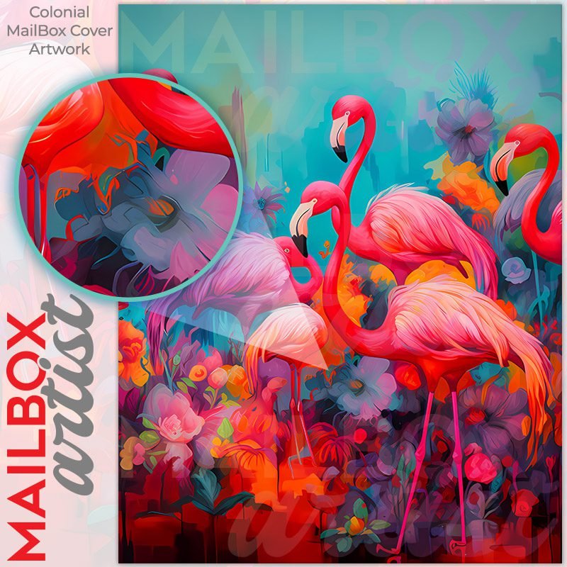 With this Pink Summer Flamingos colonial mailbox cover it’s pretty easy to convert your mailbox to a special and unique item. These covers require a flat surface, so they work with colonial mailboxes that do not have any embossed decoration or signs. Magnetic mailbox covers work with steel colonial boxes only, while self-adhesive vinyl covers are available for aluminum, plastic and steel boxes. We also offer both self-adhesive and magnetic covers with regular opaque white vinyl or reflective vinyl, which works similarly to license plates or road signs. The reflective option makes the entire cover’s surface reflective, ensuring visibility at night. In case your mailbox doesn’t work with these covers, you can purchase the preinstalled cover on a brand new mailbox as well. Also, you can create your custom colonial mailbox cover using you own pictures, adding your name, street number, etc.