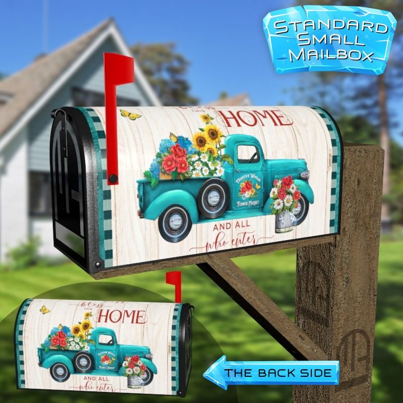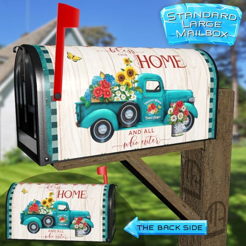 Dressing up your rural farm mailbox with the Pioneer Woman Farmhouse Truck mailbox cover is an easy way to convert it into a unique and special item. These covers require a smooth surface, so they are compatible with rural farm mailboxes that do not have any embossed decorations or signs. Magnetic mailbox covers work with steel boxes only, while self-adhesive vinyl covers are available for aluminum, plastic and steel boxes. If your mailbox is not compatible with these covers, you can purchase a brand new mailbox with a preinstalled cover. Additionally, you have the option to create a custom rural farm mailbox cover with your own pictures, name, street number, etc.
