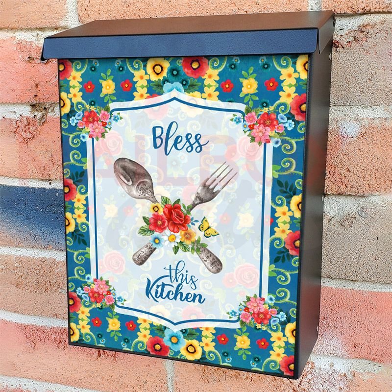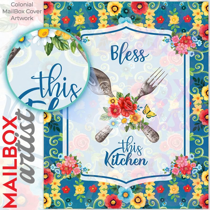 With this Pioneer Woman Kitchen Quotes #2 colonial mailbox cover it’s pretty easy to convert your mailbox to a special and unique item. These covers require a flat surface, so they work with colonial mailboxes that do not have any embossed decoration or signs. Magnetic mailbox covers work with steel colonial boxes only, while self-adhesive vinyl covers are available for aluminum, plastic and steel boxes. We also offer both self-adhesive and magnetic covers with regular opaque white vinyl or reflective vinyl, which works similarly to license plates or road signs. The reflective option makes the entire cover’s surface reflective, ensuring visibility at night. In case your mailbox doesn’t work with these covers, you can purchase the preinstalled cover on a brand new mailbox as well. Also, you can create your custom colonial mailbox cover using you own pictures, adding your name, street number, etc.