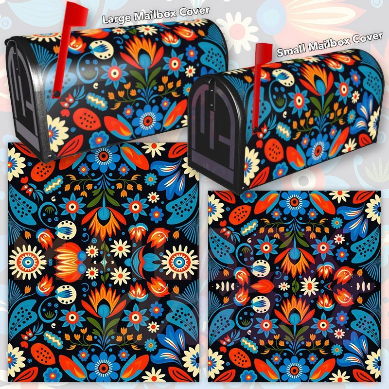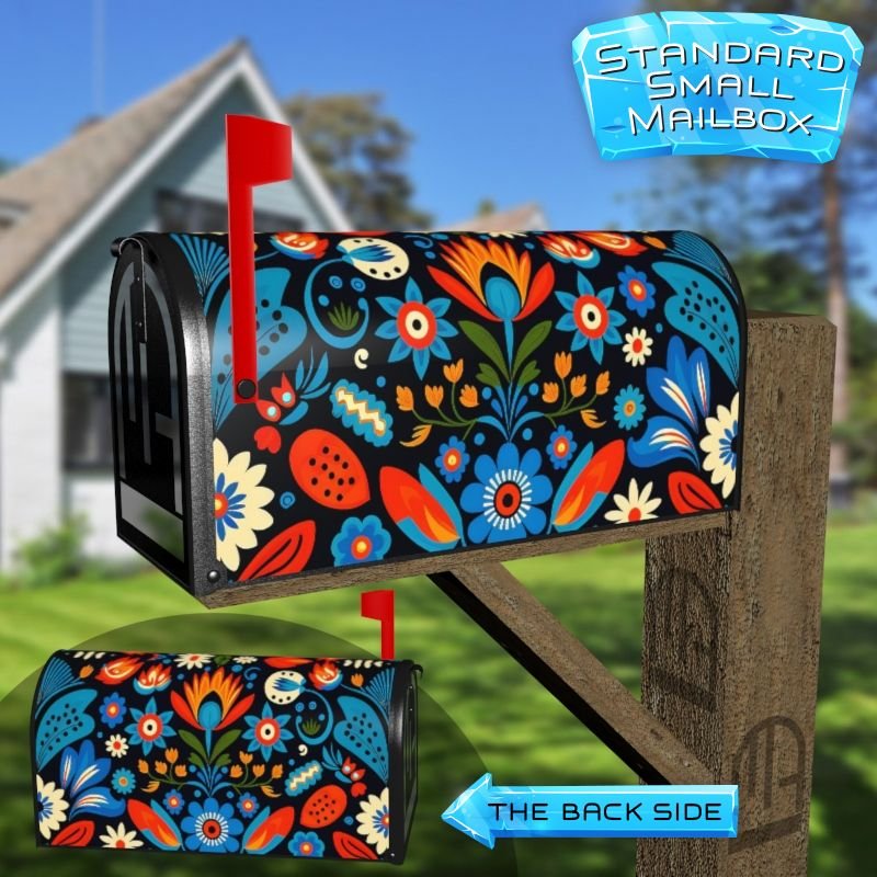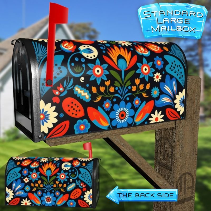 Dressing up your rural farm mailbox with the Polish Folklore Design #2 mailbox cover is an easy way to convert it into a unique and special item. These covers require a smooth surface, so they are compatible with rural farm mailboxes that do not have any embossed decorations or signs. Magnetic mailbox covers work with steel boxes only, while self-adhesive vinyl covers are available for aluminum, plastic and steel boxes. If your mailbox is not compatible with these covers, you can purchase a brand new mailbox with a preinstalled cover. Additionally, you have the option to create a custom rural farm mailbox cover with your own pictures, name, street number, etc.