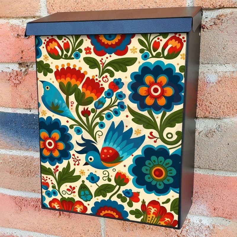 With this Polish Folklore Design #4 colonial mailbox cover it’s pretty easy to convert your mailbox to a special and unique item. These covers require a flat surface, so they work with colonial mailboxes that do not have any embossed decoration or signs. In case your mailbox doesn’t work with these covers, you can purchase the preinstalled cover on a brand new mailbox as well. Also, you can create your custom colonial mailbox cover using you own pictures, adding your name, street number, etc.
