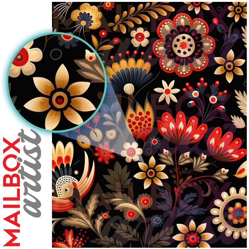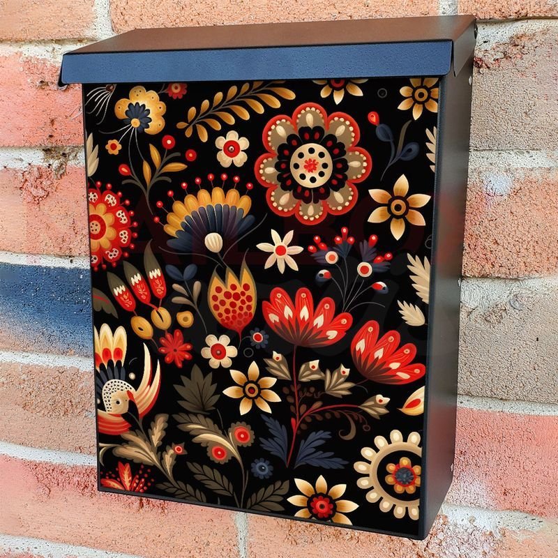 With this Polish Folklore Design #7 colonial mailbox cover it’s pretty easy to convert your mailbox to a special and unique item. These covers require a flat surface, so they work with colonial mailboxes that do not have any embossed decoration or signs. In case your mailbox doesn’t work with these covers, you can purchase the preinstalled cover on a brand new mailbox as well. Also, you can create your custom colonial mailbox cover using you own pictures, adding your name, street number, etc.