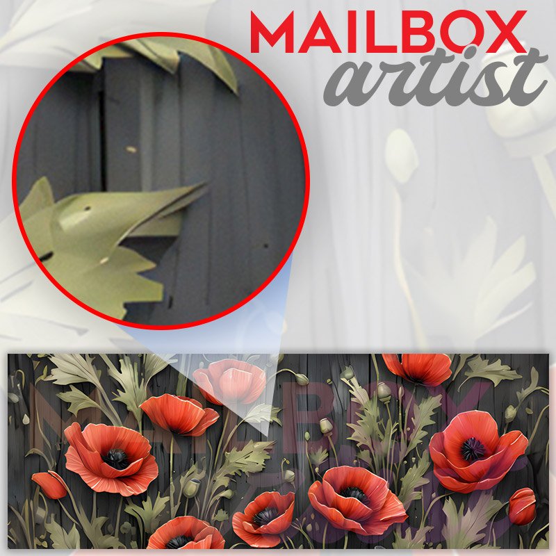 Applying your Poppies on Dark Wood townhouse / ranch mailbox cover it’s pretty easy to convert your mailbox to a special and unique item. These covers require a flat surface, so they work with townhouse / ranch mailboxes that do not have any embossed decoration or signs. Magnetic mailbox covers work with steel boxes, for aluminum and plastic boxes we offer the self-adhesive vinyl covers. In case your mailbox doesn’t work with these covers, you can purchase the preinstalled cover on a brand new mailbox as well. Also, you can create your custom townhouse / ranch mailbox cover using you own pictures, adding your name, street number, etc.