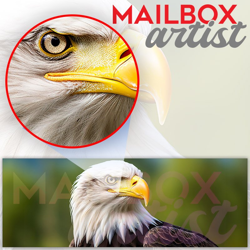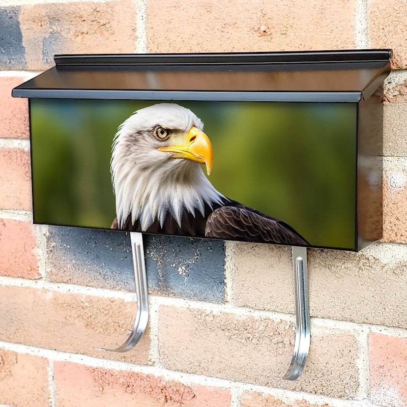 Applying your Portrait Of An American Bald Eagle townhouse / ranch mailbox cover it’s pretty easy to convert your mailbox to a special and unique item. These covers require a flat surface, so they work with townhouse / ranch mailboxes that do not have any embossed decoration or signs. Magnetic mailbox covers work with steel boxes, for aluminum and plastic boxes we offer the self-adhesive vinyl covers. In case your mailbox doesn’t work with these covers, you can purchase the preinstalled cover on a brand new mailbox as well. Also, you can create your custom townhouse / ranch mailbox cover using you own pictures, adding your name, street number, etc.