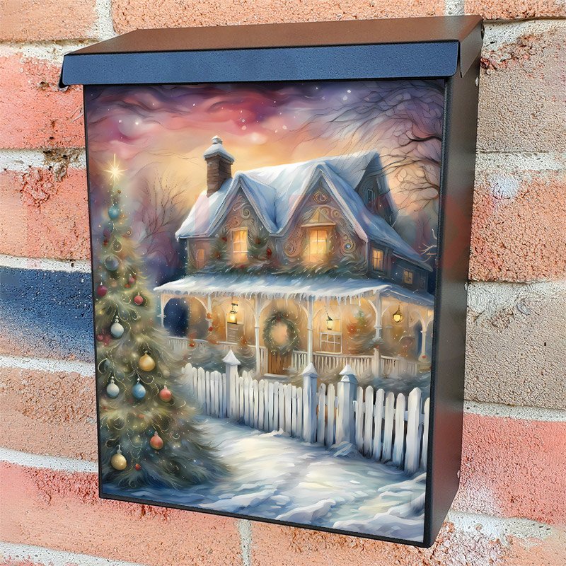 With this Pretty Christmas Cottage colonial mailbox cover it’s pretty easy to convert your mailbox to a special and unique item. These covers require a flat surface, so they work with colonial mailboxes that do not have any embossed decoration or signs. Magnetic mailbox covers work with steel colonial boxes only, while self-adhesive vinyl covers are available for aluminum, plastic and steel boxes. We also offer both self-adhesive and magnetic covers with regular opaque white vinyl or reflective vinyl, which works similarly to license plates or road signs. The reflective option makes the entire cover’s surface reflective, ensuring visibility at night. In case your mailbox doesn’t work with these covers, you can purchase the preinstalled cover on a brand new mailbox as well. Also, you can create your custom colonial mailbox cover using you own pictures, adding your name, street number, etc.