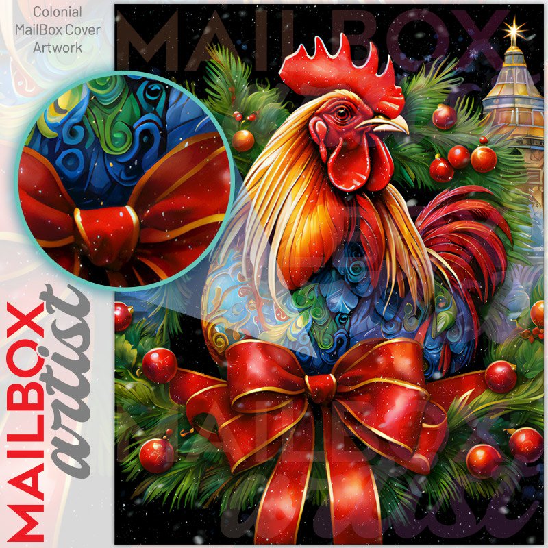 With this Pretty Christmas Rooster colonial mailbox cover it’s pretty easy to convert your mailbox to a special and unique item. These covers require a flat surface, so they work with colonial mailboxes that do not have any embossed decoration or signs. Magnetic mailbox covers work with steel colonial boxes only, while self-adhesive vinyl covers are available for aluminum, plastic and steel boxes. We also offer both self-adhesive and magnetic covers with regular opaque white vinyl or reflective vinyl, which works similarly to license plates or road signs. The reflective option makes the entire cover’s surface reflective, ensuring visibility at night. In case your mailbox doesn’t work with these covers, you can purchase the preinstalled cover on a brand new mailbox as well. Also, you can create your custom colonial mailbox cover using you own pictures, adding your name, street number, etc.