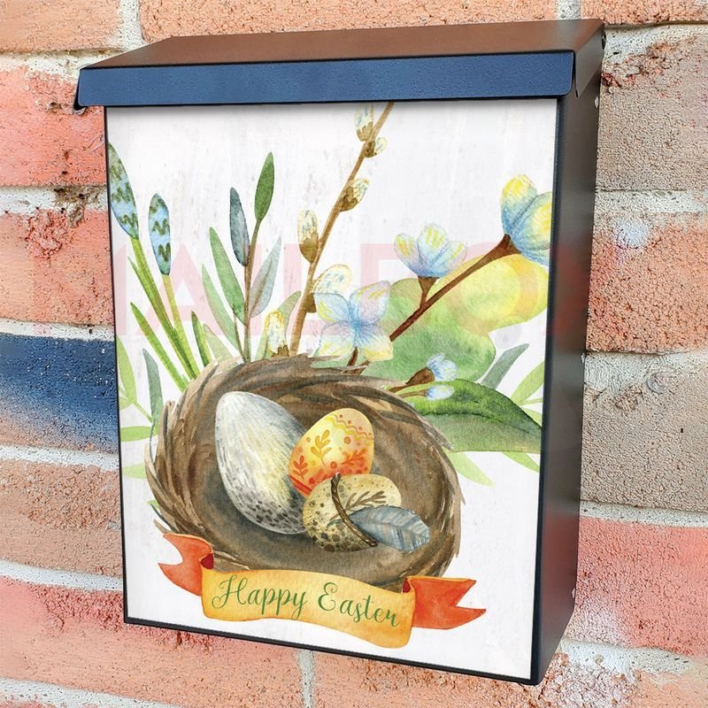 With this Pretty Easter Nest colonial mailbox cover it’s pretty easy to convert your mailbox to a special and unique item. These covers require a flat surface, so they work with colonial mailboxes that do not have any embossed decoration or signs. In case your mailbox doesn’t work with these covers, you can purchase the preinstalled cover on a brand new mailbox as well. Also, you can create your custom colonial mailbox cover using you own pictures, adding your name, street number, etc.