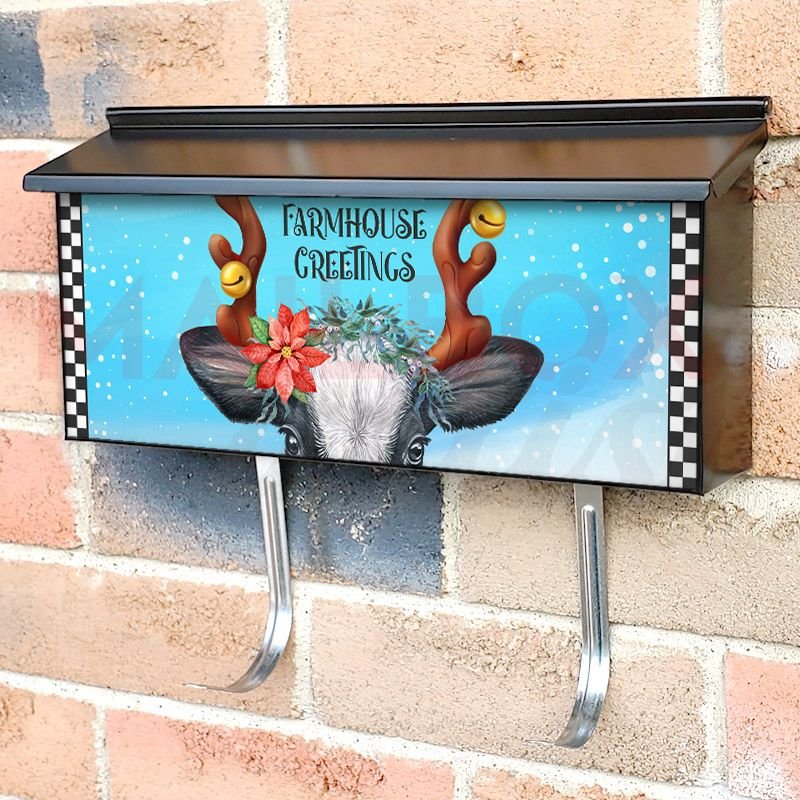 This Pretty Farmhouse Christmas Cow mailbox design was created by Krisztina Soos