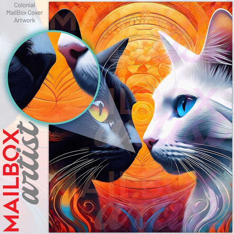 Pretty Yin and Yang Cats Colonial Mailbox Cover