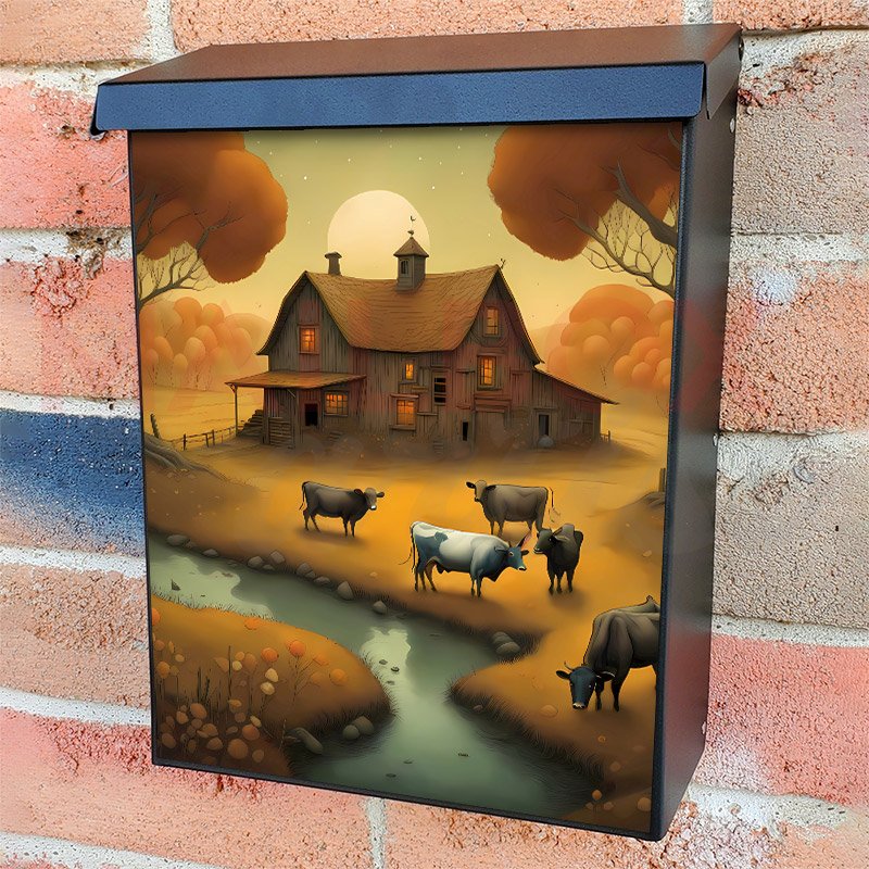 This Prim Country Farmhouse with Cows mailbox design was created by Krisztina Soos