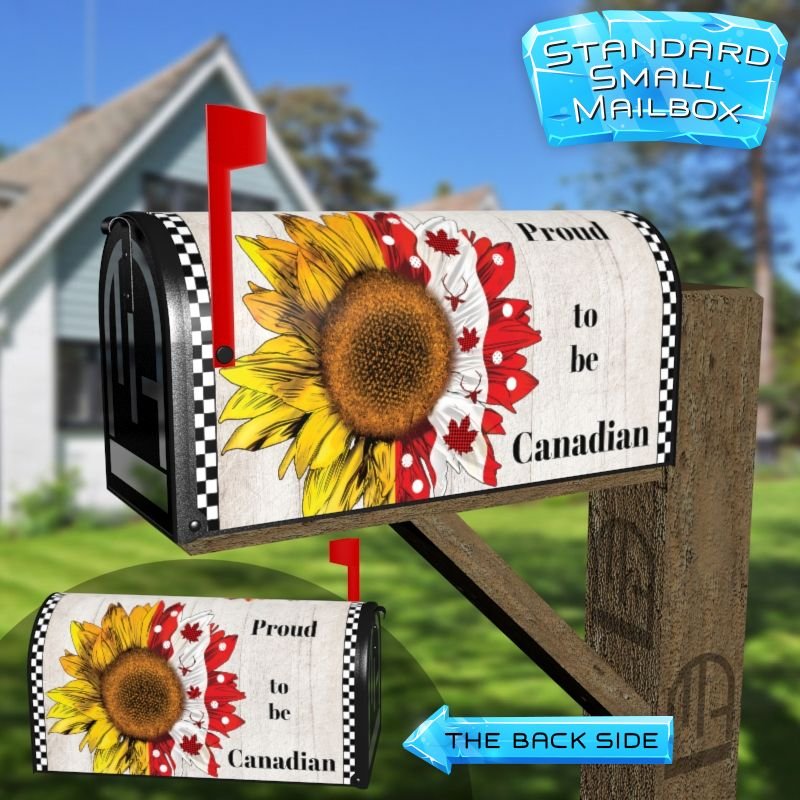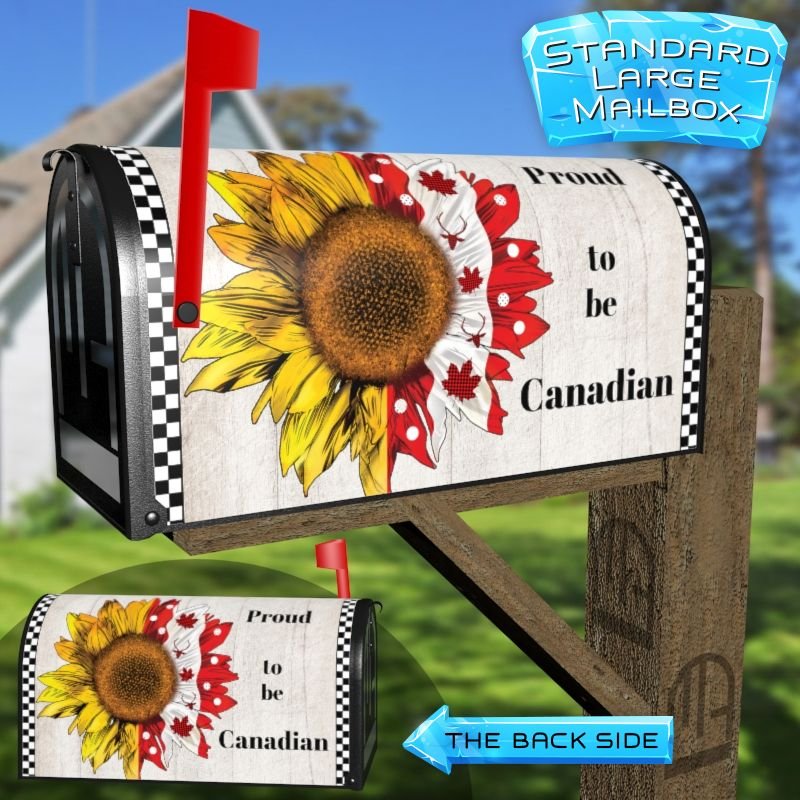 Dressing up your rural farm mailbox with the Proud to Be Canadian mailbox cover is an easy way to convert it into a unique and special item. These covers require a smooth surface, so they are compatible with rural farm mailboxes that do not have any embossed decorations or signs. Magnetic mailbox covers work with steel boxes only, while self-adhesive vinyl covers are available for aluminum, plastic and steel boxes. If your mailbox is not compatible with these covers, you can purchase a brand new mailbox with a preinstalled cover. Additionally, you have the option to create a custom rural farm mailbox cover with your own pictures, name, street number, etc.
