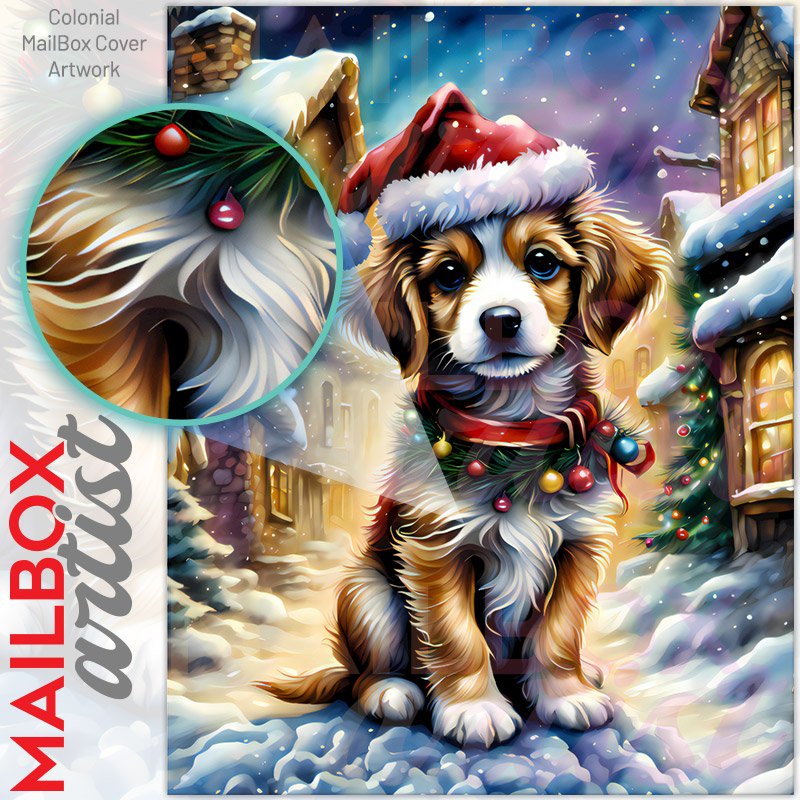 Puppy in Santa Hat Colonial Mailbox Cover