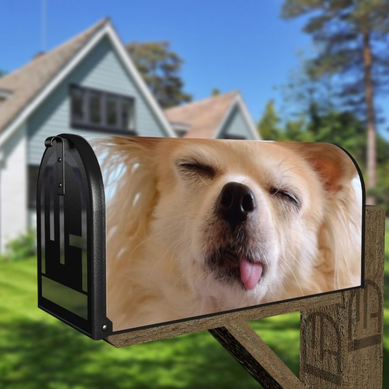 Grab this creative Puppy Tongue Out #1 rural/curbside/farm mailbox cover as self adhesive vinyl or magnetic cover. Our magnetic covers have the magnetic surface under the whole design, not only two magnet strips like in cheaper products. We also offer both the self adhesive and the magnetic covers with regular opaque white vinyl or reflective vinyl which works the same way as the licence plates or road signs; pretty visible at night. We make these covers for both large and small mailboxes.