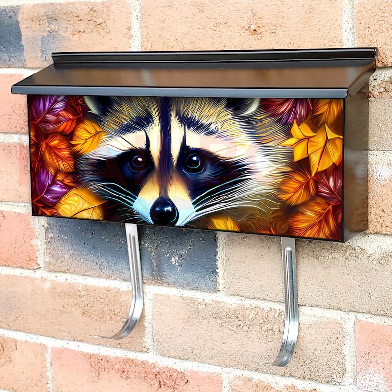 Applying your Raccoon in the Leaves townhouse / ranch mailbox cover it’s pretty easy to convert your mailbox to a special and unique item. These covers require a flat surface, so they work with townhouse / ranch mailboxes that do not have any embossed decoration or signs. Magnetic mailbox covers work with steel boxes, for aluminum and plastic boxes we offer the self-adhesive vinyl covers. In case your mailbox doesn’t work with these covers, you can purchase the preinstalled cover on a brand new mailbox as well. Also, you can create your custom townhouse / ranch mailbox cover using you own pictures, adding your name, street number, etc.