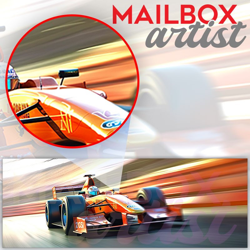 This Racing Car At High Speed On Race Track mailbox design was created by Krisztina Soos