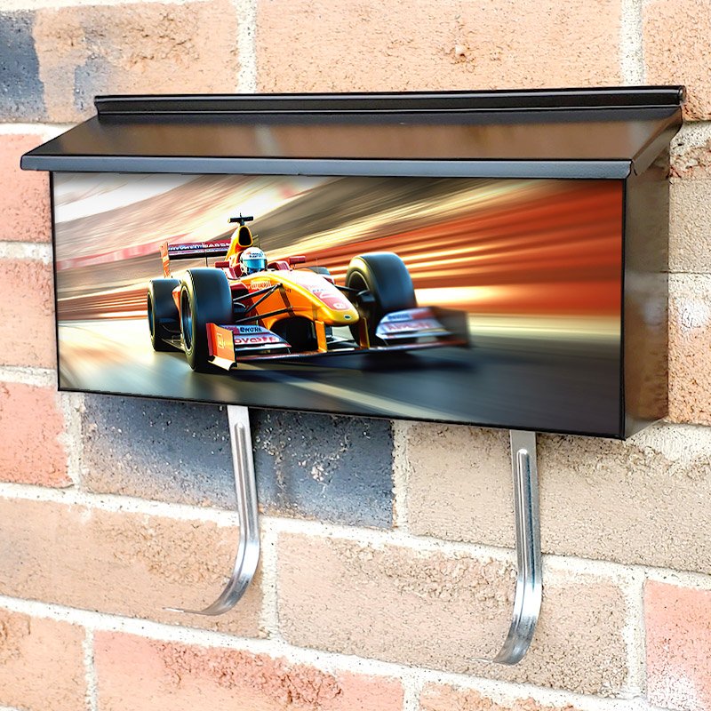 Applying your Racing Car At High Speed Racer On A Racing Car townhouse / ranch mailbox cover it’s pretty easy to convert your mailbox to a special and unique item. These covers require a flat surface, so they work with townhouse / ranch mailboxes that do not have any embossed decoration or signs. Magnetic mailbox covers work with steel boxes, for aluminum and plastic boxes we offer the self-adhesive vinyl covers. In case your mailbox doesn’t work with these covers, you can purchase the preinstalled cover on a brand new mailbox as well. Also, you can create your custom townhouse / ranch mailbox cover using you own pictures, adding your name, street number, etc.