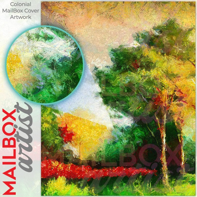 With this Rainbow Over the Trees colonial mailbox cover it’s pretty easy to convert your mailbox to a special and unique item. These covers require a flat surface, so they work with colonial mailboxes that do not have any embossed decoration or signs. Magnetic mailbox covers work with steel colonial boxes only, while self-adhesive vinyl covers are available for aluminum, plastic and steel boxes. We also offer both self-adhesive and magnetic covers with regular opaque white vinyl or reflective vinyl, which works similarly to license plates or road signs. The reflective option makes the entire cover’s surface reflective, ensuring visibility at night. In case your mailbox doesn’t work with these covers, you can purchase the preinstalled cover on a brand new mailbox as well. Also, you can create your custom colonial mailbox cover using you own pictures, adding your name, street number, etc.