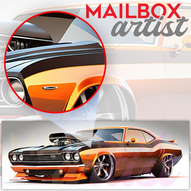 This Realisitc Cartoon Illustration Of Muscle Sportcar mailbox design was created by Krisztina Soos