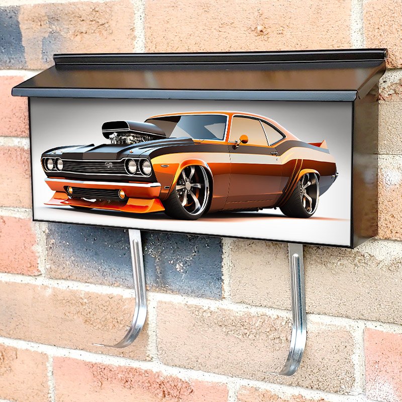 Applying your Realisitc Cartoon Illustration Of Muscle Sportcar townhouse / ranch mailbox cover it’s pretty easy to convert your mailbox to a special and unique item. These covers require a flat surface, so they work with townhouse / ranch mailboxes that do not have any embossed decoration or signs. Magnetic mailbox covers work with steel boxes, for aluminum and plastic boxes we offer the self-adhesive vinyl covers. In case your mailbox doesn’t work with these covers, you can purchase the preinstalled cover on a brand new mailbox as well. Also, you can create your custom townhouse / ranch mailbox cover using you own pictures, adding your name, street number, etc.