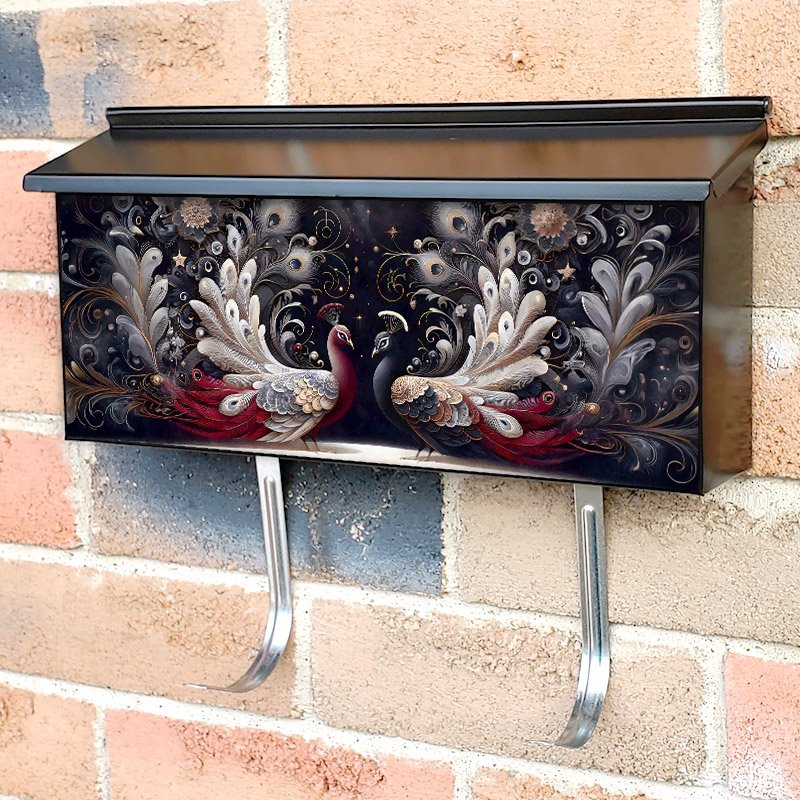 Applying your Red and Blue Peacock Couple townhouse / ranch mailbox cover it’s pretty easy to convert your mailbox to a special and unique item. These covers require a flat surface, so they work with townhouse / ranch mailboxes that do not have any embossed decoration or signs. Magnetic mailbox covers work with steel boxes, for aluminum and plastic boxes we offer the self-adhesive vinyl covers. In case your mailbox doesn’t work with these covers, you can purchase the preinstalled cover on a brand new mailbox as well. Also, you can create your custom townhouse / ranch mailbox cover using you own pictures, adding your name, street number, etc.
