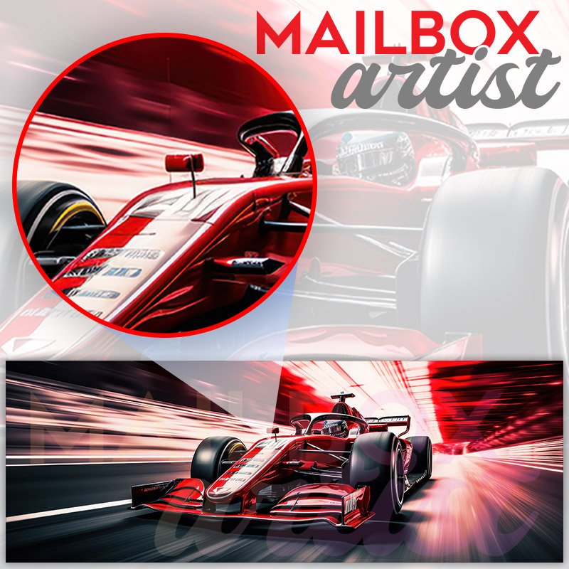 This Red Formula Car Racing mailbox design was created by Krisztina Soos
