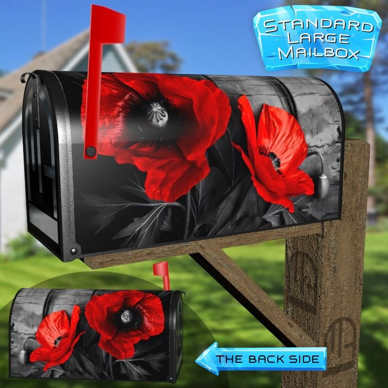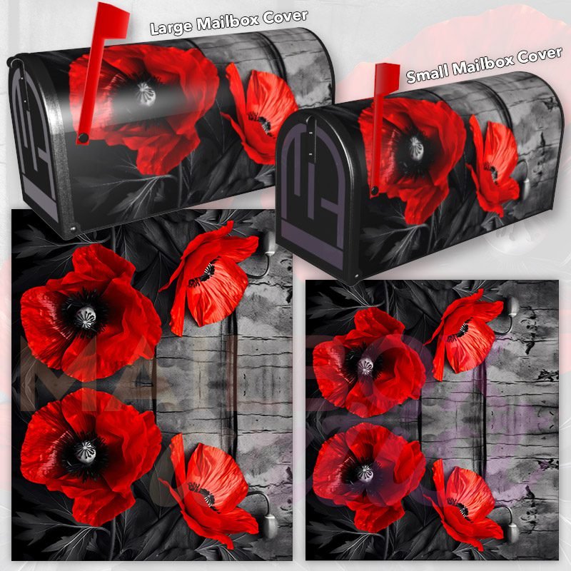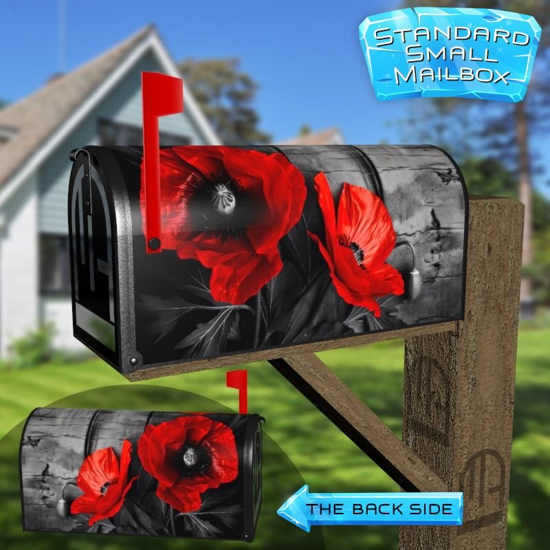 Dressing up your rural farm mailbox with the Red Poppies As A Symbol Of Memory For The Fallen Soldiers mailbox cover is an easy way to convert it into a unique and special item. These covers require a smooth surface, so they are compatible with rural farm mailboxes that do not have any embossed decorations or signs. Magnetic mailbox covers work with steel boxes only, while self-adhesive vinyl covers are available for aluminum, plastic and steel boxes. If your mailbox is not compatible with these covers, you can purchase a brand new mailbox with a preinstalled cover. Additionally, you have the option to create a custom rural farm mailbox cover with your own pictures, name, street number, etc.