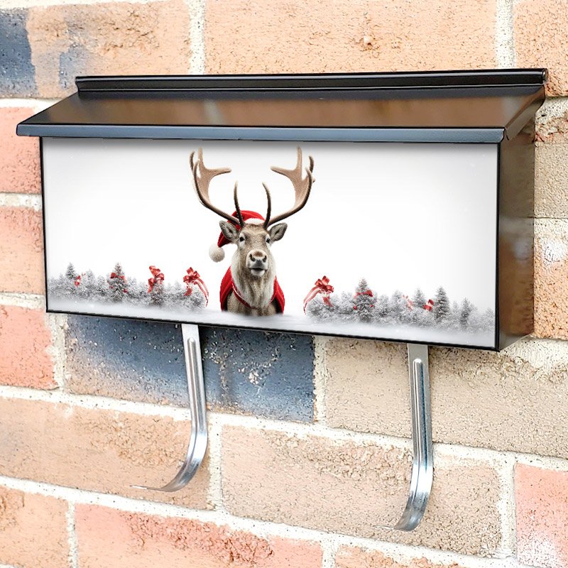 Applying your Reindeer With Red Nose And Santa Hat townhouse / ranch mailbox cover it’s pretty easy to convert your mailbox to a special and unique item. These covers require a flat surface, so they work with townhouse / ranch mailboxes that do not have any embossed decoration or signs. Magnetic mailbox covers work with steel boxes, for aluminum and plastic boxes we offer the self-adhesive vinyl covers. In case your mailbox doesn’t work with these covers, you can purchase the preinstalled cover on a brand new mailbox as well. Also, you can create your custom townhouse / ranch mailbox cover using you own pictures, adding your name, street number, etc.