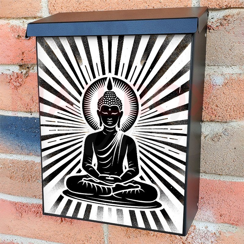 With this Relaxing Buddha colonial mailbox cover it’s pretty easy to convert your mailbox to a special and unique item. These covers require a flat surface, so they work with colonial mailboxes that do not have any embossed decoration or signs. Magnetic mailbox covers work with steel colonial boxes only, while self-adhesive vinyl covers are available for aluminum, plastic and steel boxes. We also offer both self-adhesive and magnetic covers with regular opaque white vinyl or reflective vinyl, which works similarly to license plates or road signs. The reflective option makes the entire cover’s surface reflective, ensuring visibility at night. In case your mailbox doesn’t work with these covers, you can purchase the preinstalled cover on a brand new mailbox as well. Also, you can create your custom colonial mailbox cover using you own pictures, adding your name, street number, etc.