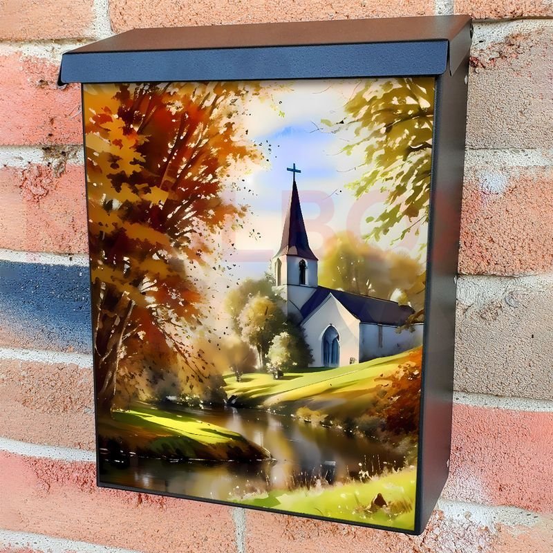 With this Riverside Church colonial mailbox cover it’s pretty easy to convert your mailbox to a special and unique item. These covers require a flat surface, so they work with colonial mailboxes that do not have any embossed decoration or signs. In case your mailbox doesn’t work with these covers, you can purchase the preinstalled cover on a brand new mailbox as well. Also, you can create your custom colonial mailbox cover using you own pictures, adding your name, street number, etc.
