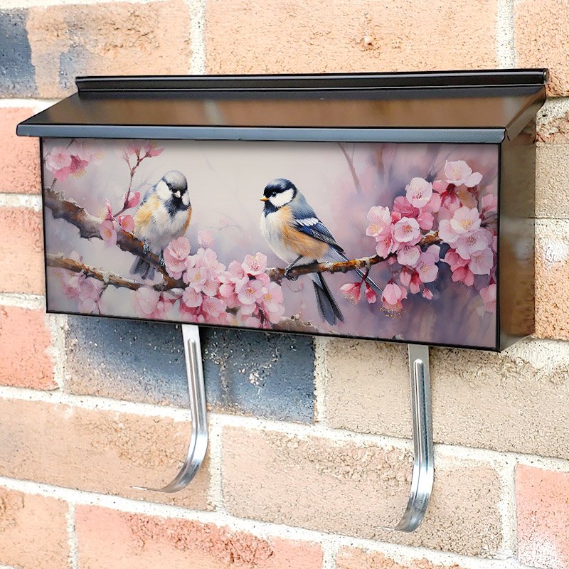 Applying your Romantic Bird Couple Sitting On Tree Branch 2 townhouse / ranch mailbox cover it’s pretty easy to convert your mailbox to a special and unique item. These covers require a flat surface, so they work with townhouse / ranch mailboxes that do not have any embossed decoration or signs. Magnetic mailbox covers work with steel boxes, for aluminum and plastic boxes we offer the self-adhesive vinyl covers. In case your mailbox doesn’t work with these covers, you can purchase the preinstalled cover on a brand new mailbox as well. Also, you can create your custom townhouse / ranch mailbox cover using you own pictures, adding your name, street number, etc.