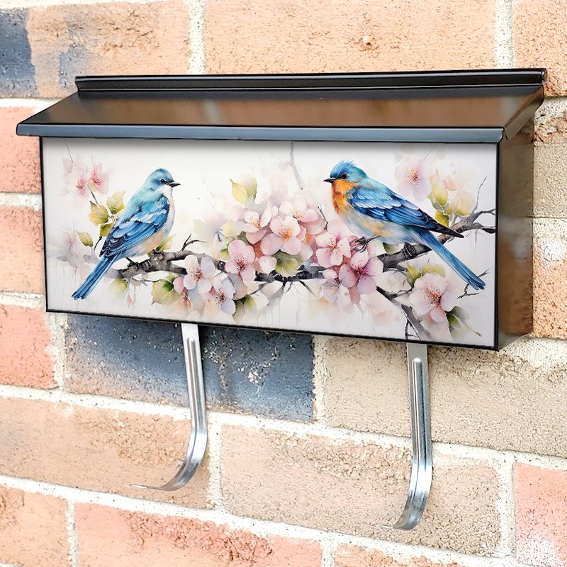 Applying your Romantic Bird Couple Sitting On Tree Branch 5 townhouse / ranch mailbox cover it’s pretty easy to convert your mailbox to a special and unique item. These covers require a flat surface, so they work with townhouse / ranch mailboxes that do not have any embossed decoration or signs. Magnetic mailbox covers work with steel boxes, for aluminum and plastic boxes we offer the self-adhesive vinyl covers. In case your mailbox doesn’t work with these covers, you can purchase the preinstalled cover on a brand new mailbox as well. Also, you can create your custom townhouse / ranch mailbox cover using you own pictures, adding your name, street number, etc.