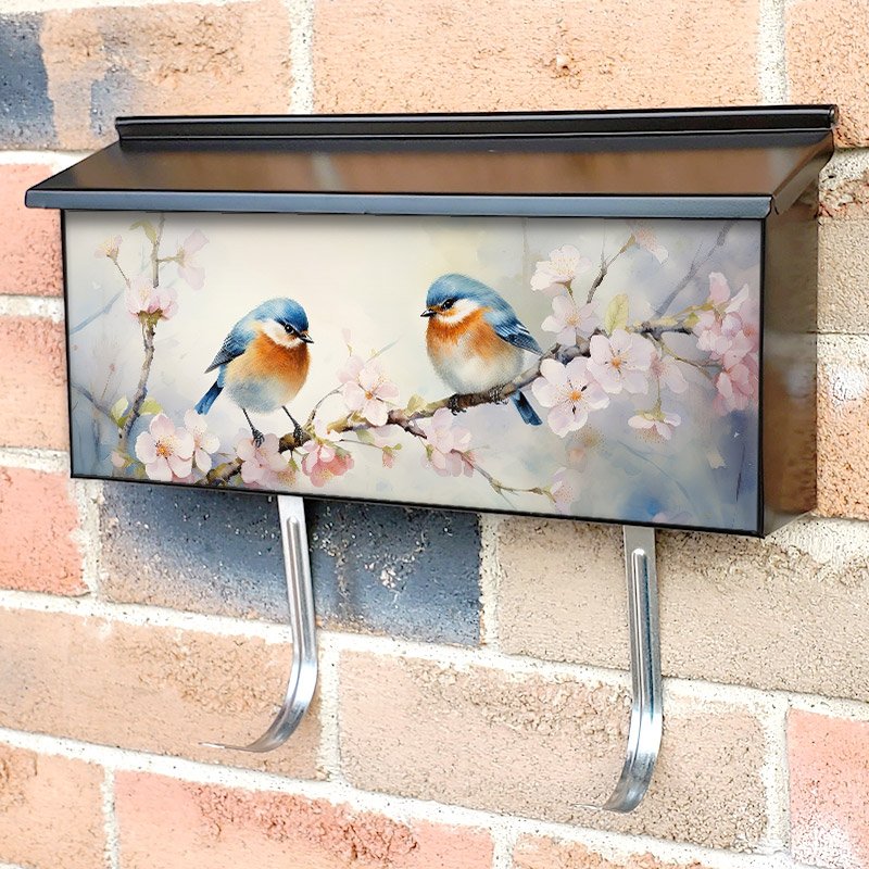 Applying your Romantic Bird Couple Sitting On Tree Branch 7 townhouse / ranch mailbox cover it’s pretty easy to convert your mailbox to a special and unique item. These covers require a flat surface, so they work with townhouse / ranch mailboxes that do not have any embossed decoration or signs. Magnetic mailbox covers work with steel boxes, for aluminum and plastic boxes we offer the self-adhesive vinyl covers. In case your mailbox doesn’t work with these covers, you can purchase the preinstalled cover on a brand new mailbox as well. Also, you can create your custom townhouse / ranch mailbox cover using you own pictures, adding your name, street number, etc.