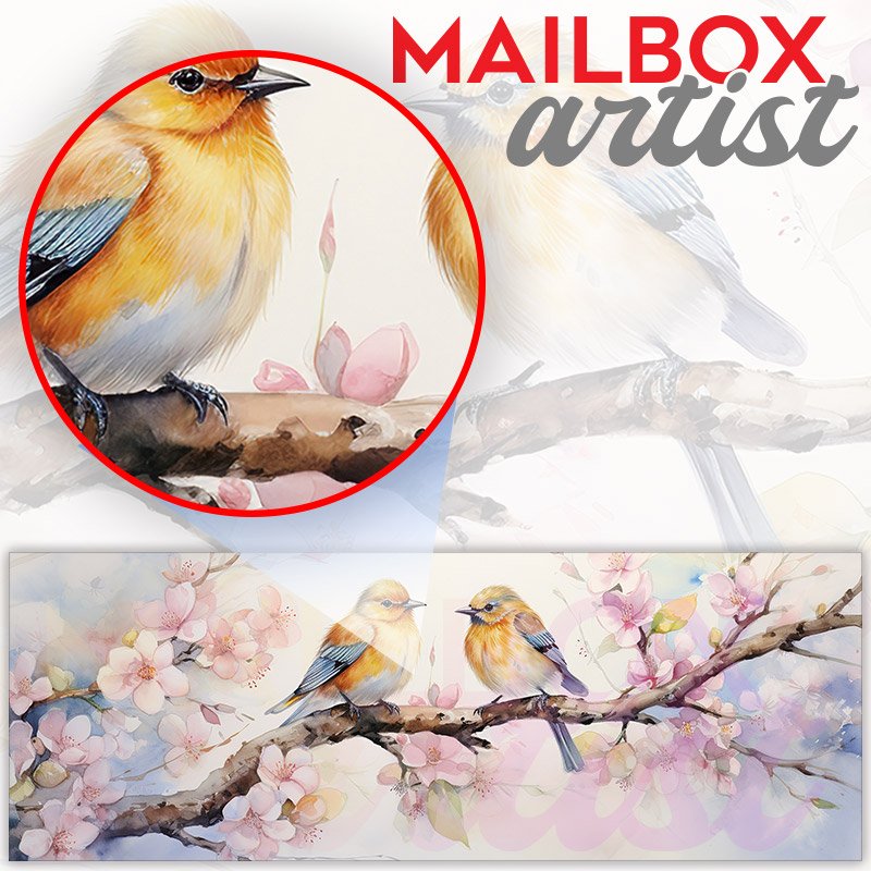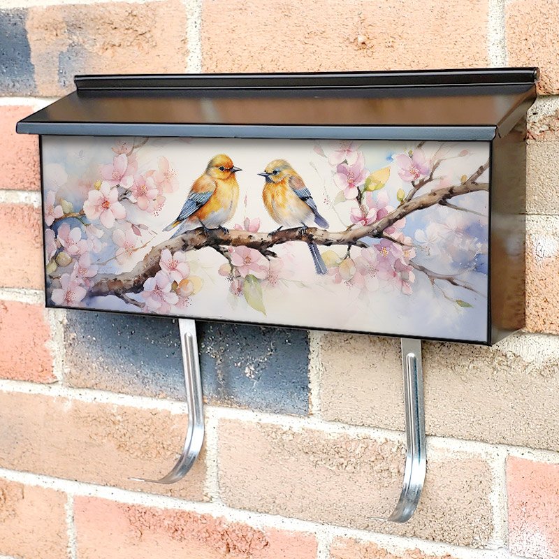 Applying your Romantic Bird Couple Sitting On Tree Branch townhouse / ranch mailbox cover it’s pretty easy to convert your mailbox to a special and unique item. These covers require a flat surface, so they work with townhouse / ranch mailboxes that do not have any embossed decoration or signs. Magnetic mailbox covers work with steel boxes, for aluminum and plastic boxes we offer the self-adhesive vinyl covers. In case your mailbox doesn’t work with these covers, you can purchase the preinstalled cover on a brand new mailbox as well. Also, you can create your custom townhouse / ranch mailbox cover using you own pictures, adding your name, street number, etc.