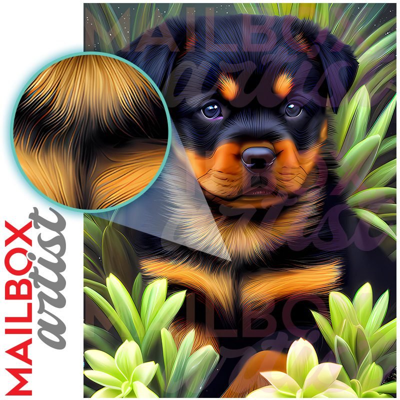 With this Rottweiler Puppy in the Garden colonial mailbox cover it’s pretty easy to convert your mailbox to a special and unique item. These covers require a flat surface, so they work with colonial mailboxes that do not have any embossed decoration or signs. In case your mailbox doesn’t work with these covers, you can purchase the preinstalled cover on a brand new mailbox as well. Also, you can create your custom colonial mailbox cover using you own pictures, adding your name, street number, etc.