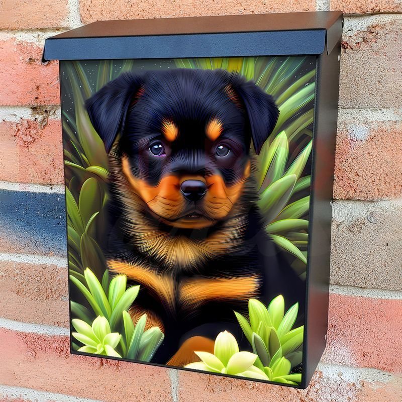This Rottweiler Puppy in the Garden mailbox design was created by Krisztina Soos