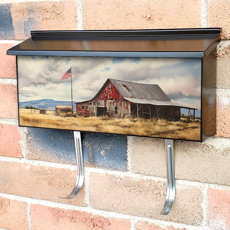 Applying your Rural Landscape With Barn And American Flag townhouse / ranch mailbox cover it’s pretty easy to convert your mailbox to a special and unique item. These covers require a flat surface, so they work with townhouse / ranch mailboxes that do not have any embossed decoration or signs. Magnetic mailbox covers work with steel boxes, for aluminum and plastic boxes we offer the self-adhesive vinyl covers. In case your mailbox doesn’t work with these covers, you can purchase the preinstalled cover on a brand new mailbox as well. Also, you can create your custom townhouse / ranch mailbox cover using you own pictures, adding your name, street number, etc.