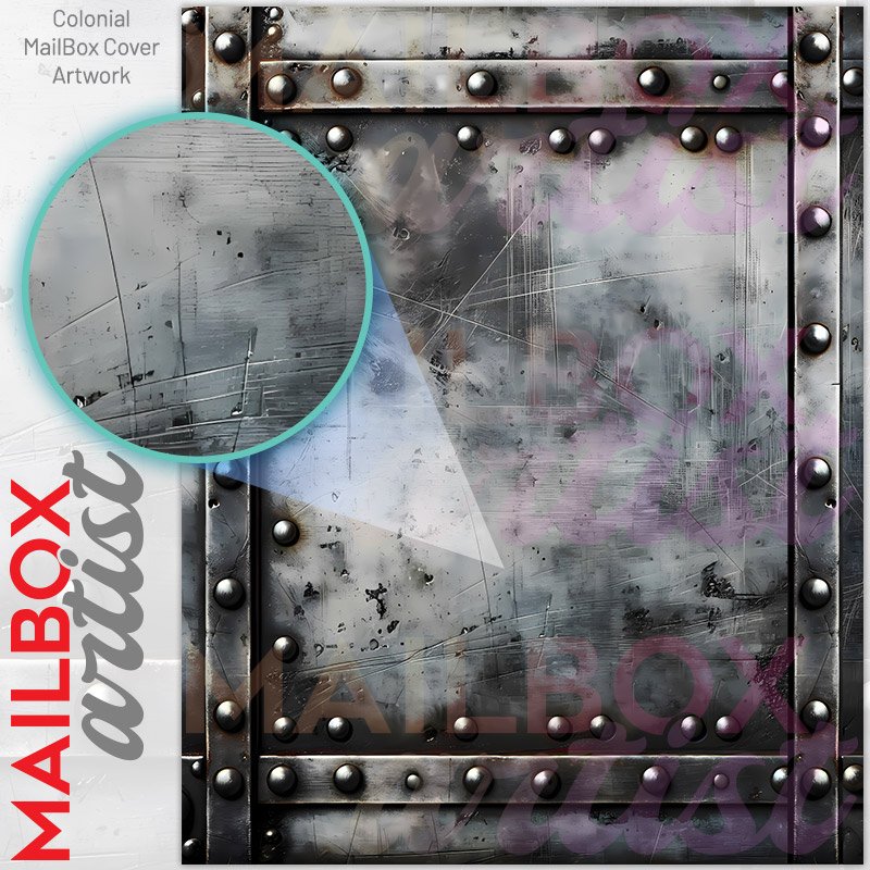 With this Rusted Metal Door colonial mailbox cover it’s pretty easy to convert your mailbox to a special and unique item. These covers require a flat surface, so they work with colonial mailboxes that do not have any embossed decoration or signs. Magnetic mailbox covers work with steel colonial boxes only, while self-adhesive vinyl covers are available for aluminum, plastic and steel boxes. We also offer both self-adhesive and magnetic covers with regular opaque white vinyl or reflective vinyl, which works similarly to license plates or road signs. The reflective option makes the entire cover’s surface reflective, ensuring visibility at night. In case your mailbox doesn’t work with these covers, you can purchase the preinstalled cover on a brand new mailbox as well. Also, you can create your custom colonial mailbox cover using you own pictures, adding your name, street number, etc.